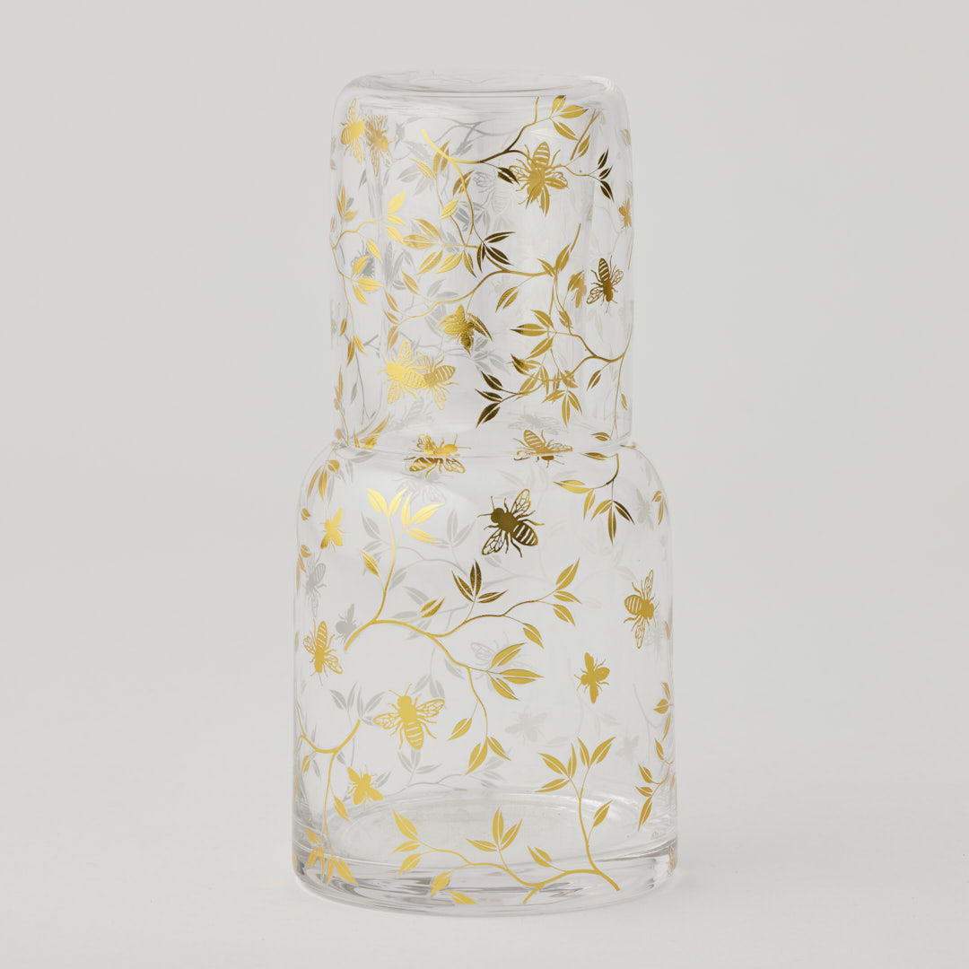 The Bee Carafe Set is expertly crafted from glass and features an intricate bee design. Inspired by the elegant drinkware sets found on bedside tables in France, the Florian Carafe Set brings sophistication and charm to the everyday act of drinking water.