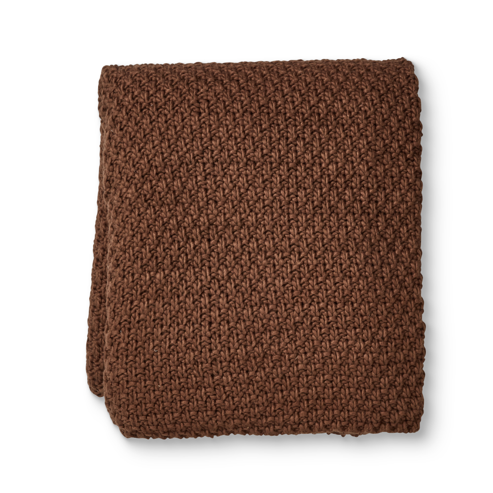 Thick knitted throw in an chocolate brown colour way.