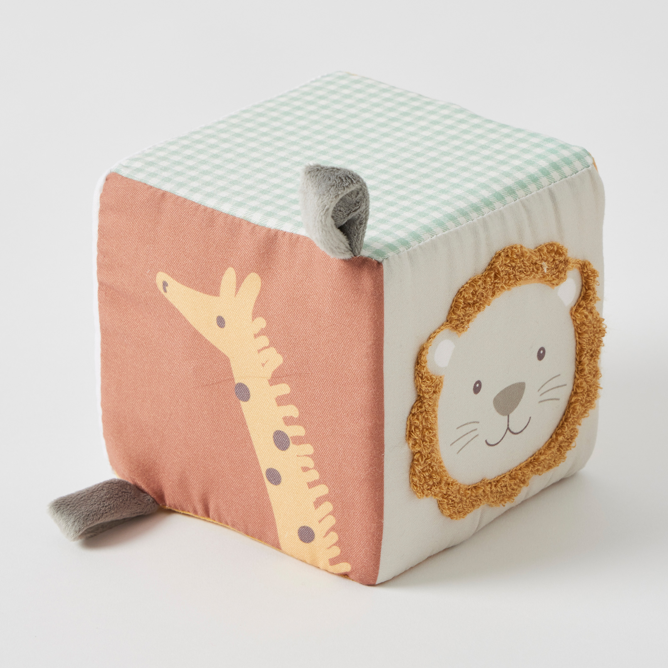 Cute and smart, the Plush Safari Block is designed to delight a babyโs developing mind with soft-toned graphics, tags, and textures. The enclosed rattle will delight little ones, engaging all their senses and creating hours of fun.