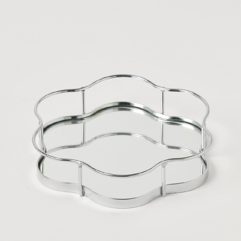 Elevate vanities and shelves with Rosette Mirrored Tray, charmingly shaped like a flower with a soft scalloped sihlouette. With its glass base and silver-toned finish itโs elegant piece for displaying jewellery.