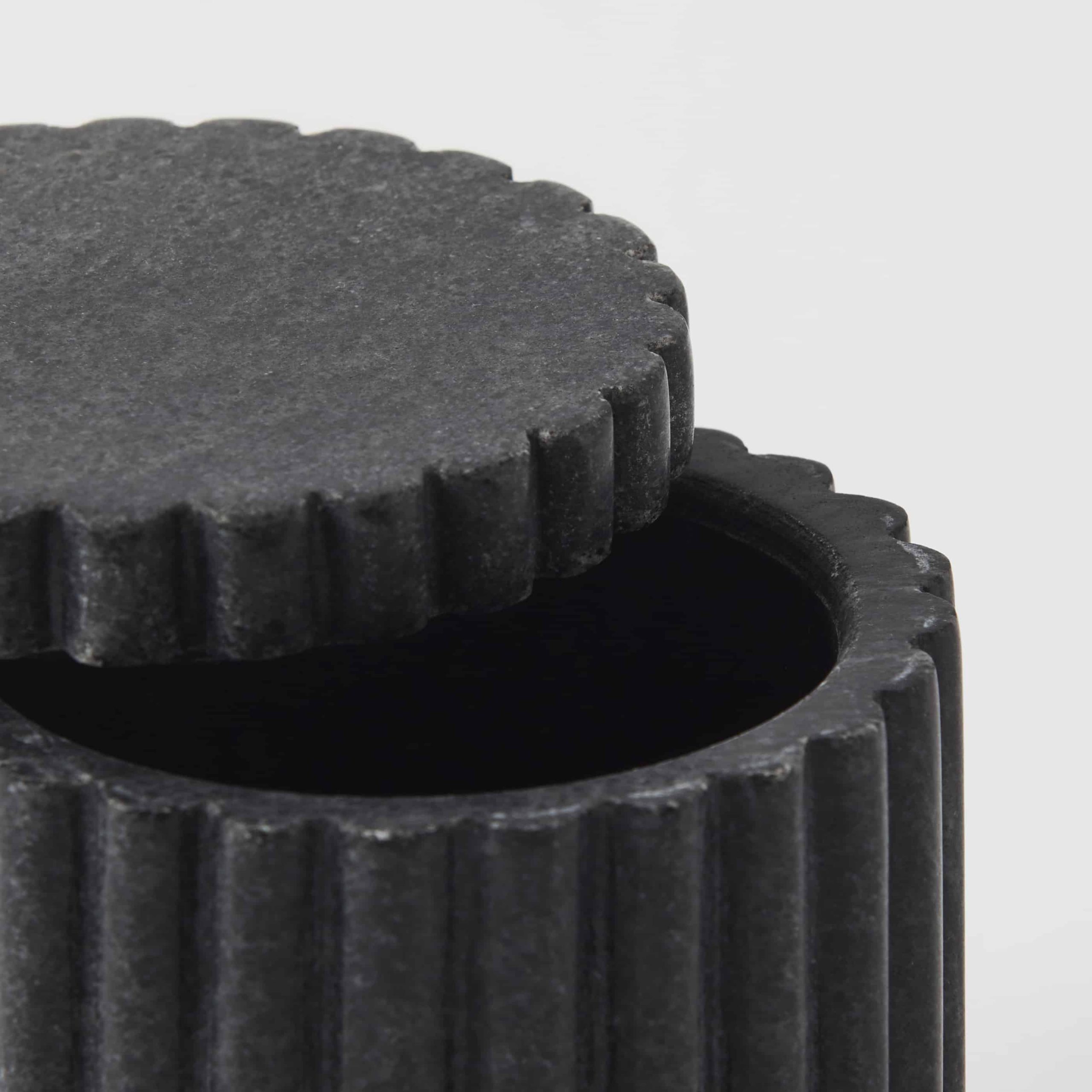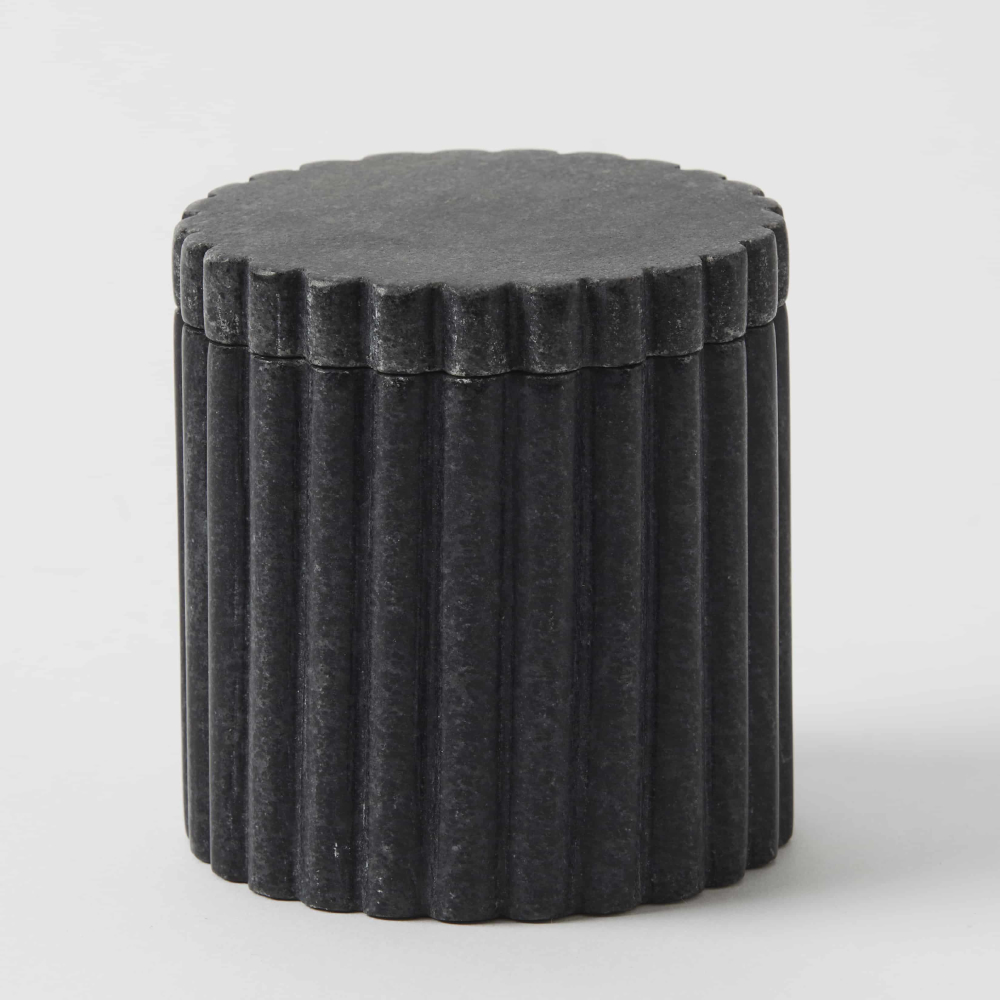Add an air of sophistication to your home with the Turner Cannister. Crafted from black marble, its unique markings ensure that no two pieces are the same.