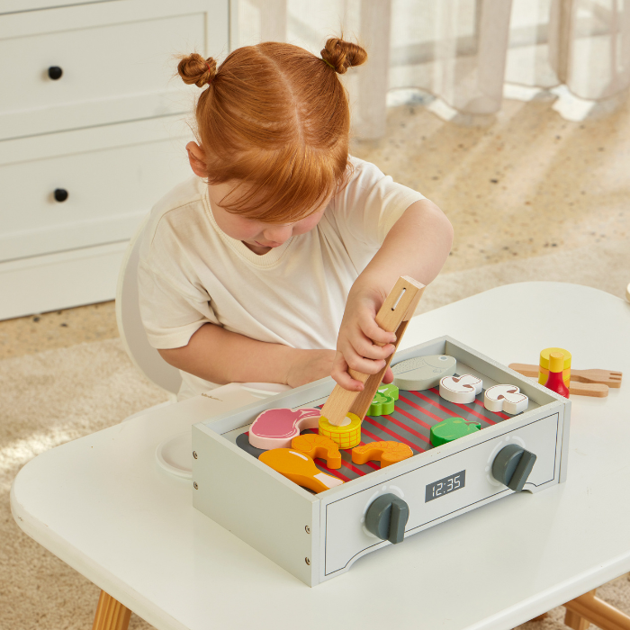 Fire up the fun with the Zookabee Wooden Tabletop BBQ Set! Packed with colourful food pieces, utensils, and a mini grill, this set inspires imaginative role play while building coordination and social skills. Neatly boxed in colour packaging, itโs a delightful pick for playtime or gifting.