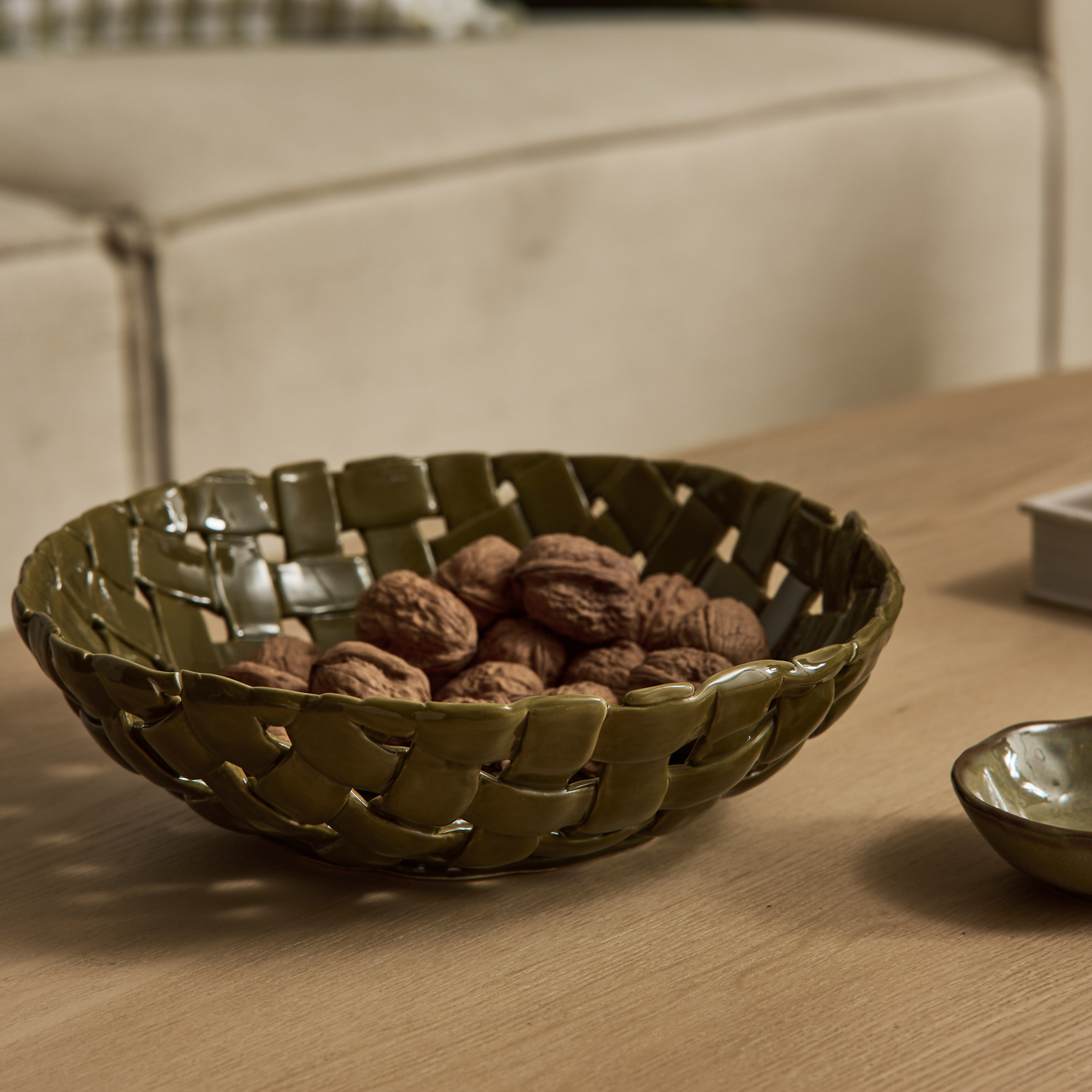 Handwoven and hand glazed ceramic decor bowl. Due to the nature of the product some variation in colour will occur.