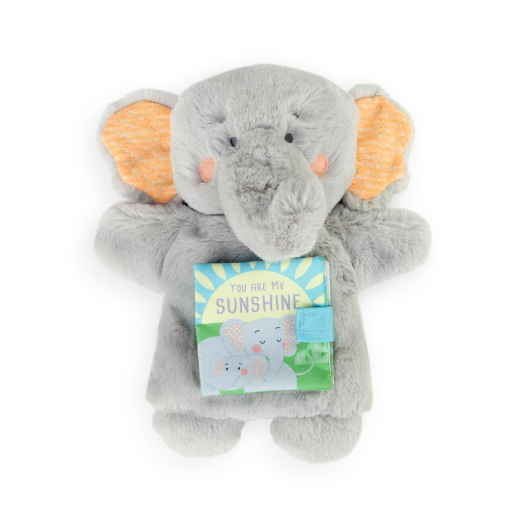 The lovely You Are My Sunshine Puppet Book is the perfect thoughtful present for any little one on your list. This two-in-one duo is perfect for bringing stories to life, with a brightly colored soft storybook and an interactive plush puppet that lets the child act out the story. This piece is part of our curated Love to Play kidsโ and nursery collection. This line is designed to inspire the imagination and encourage learning and play among every little boy and girl. Each piece features playful characters and bold colors that will get kids excited to learn something new. This collection is designed with safety-tested materials, soft fabrics and unique features, making each piece a wonderful gifting option for any little one. Wrapped and ready to gift, this puppet book is a wonderful option for any new baby, new parents or expecting parents on your list.